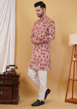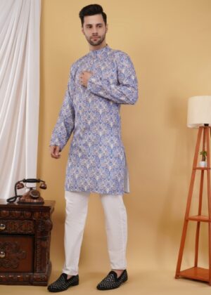 Cotton geometric printed kurta for men designed for style, comfort, and versatility. Crafted from premium-quality cotton, this kurta offers a soft, breathable, and lightweight feel, perfect for extended wear during celebrations or casual outings.