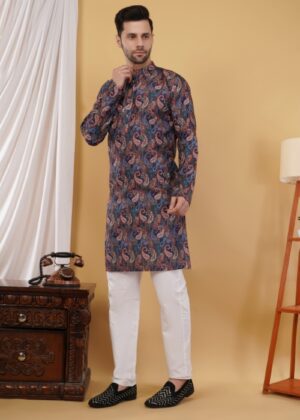 Men’s Cotton Printed Kurta for Men with Sequence Work – Festive Ethnic Wear