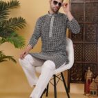 It also makes a thoughtful gift choice for weddings, festivals, and special celebrations for men who value stylish and comfortable ethnic wear. Upgrade your wardrobe with this timeless cotton blend sequins embroidered kurta that redefines elegance in traditional fashion.
