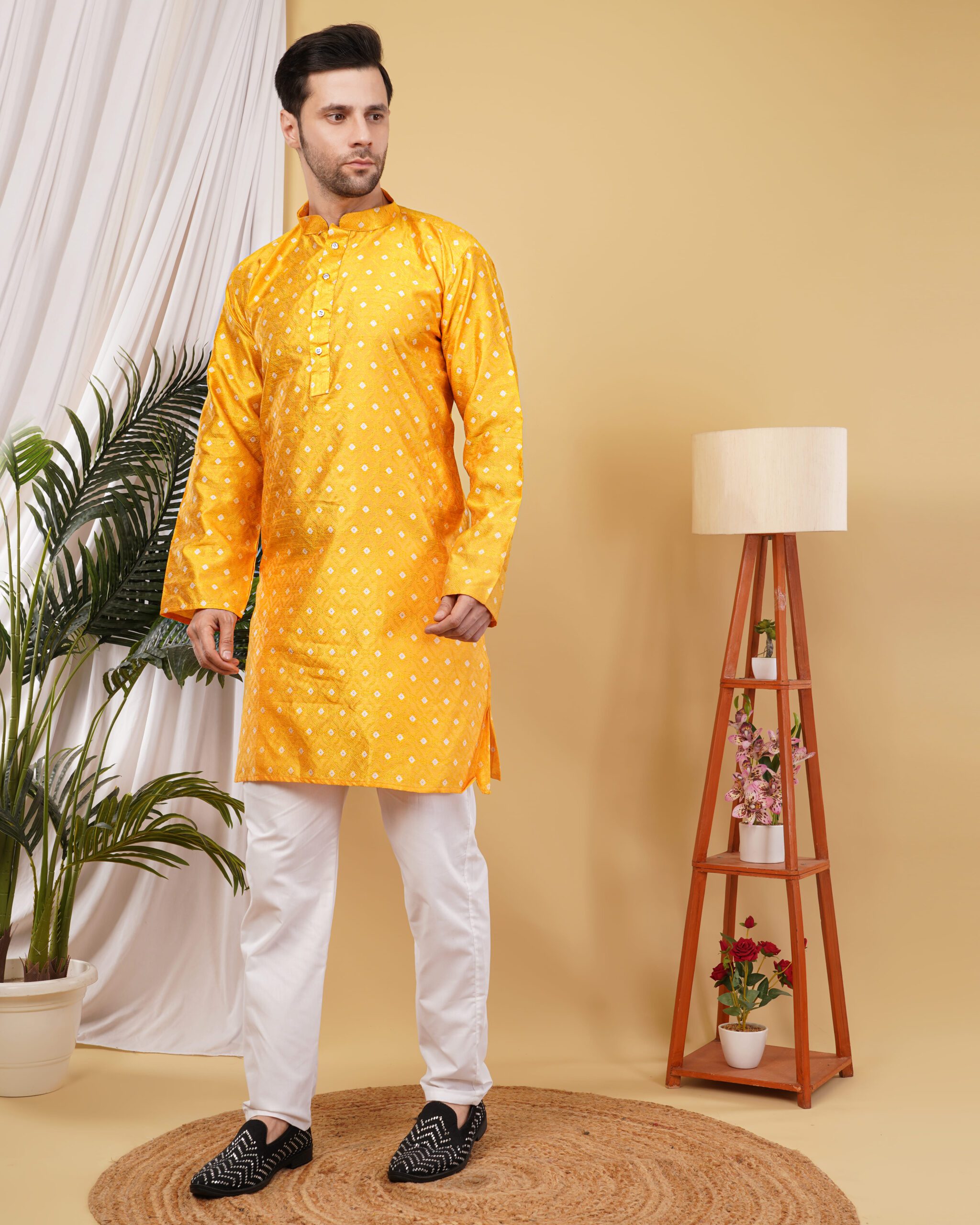Whether it’s Diwali, Eid, a wedding celebration, or a cultural event, this silk jacquard embroidered kurta ensures you stand out with timeless charm. It also makes a thoughtful gift choice for grooms, friends, or family members during special occasions.