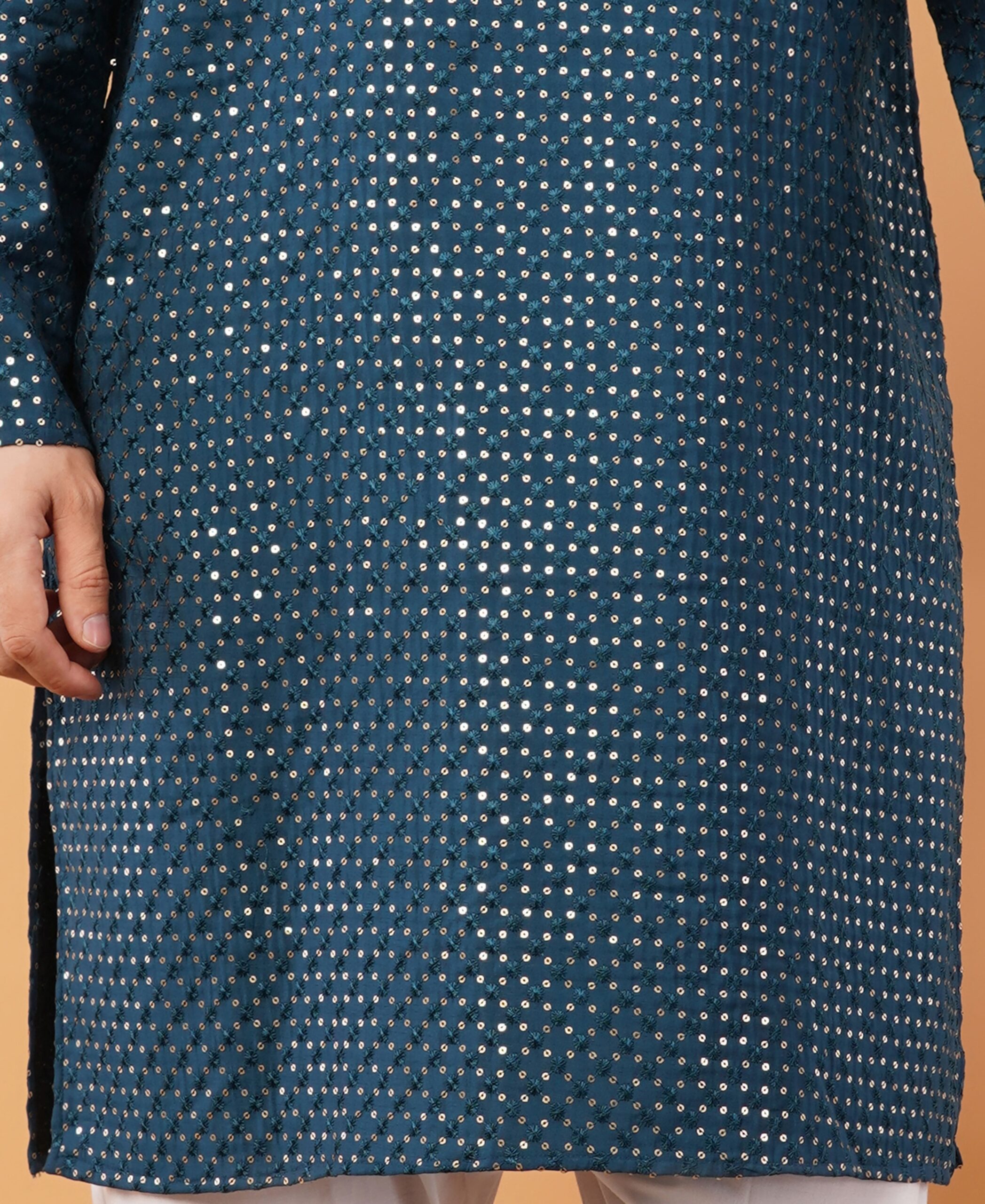 The regular fit design ensures comfort and ease of movement, while the embroidered neckline and patterned detailing bring a touch of traditional artistry with modern flair. Its versatile styling allows you to pair it with churidar, pajama, or trousers, making it suitable for weddings, parties, family gatherings, or casual festive outings.