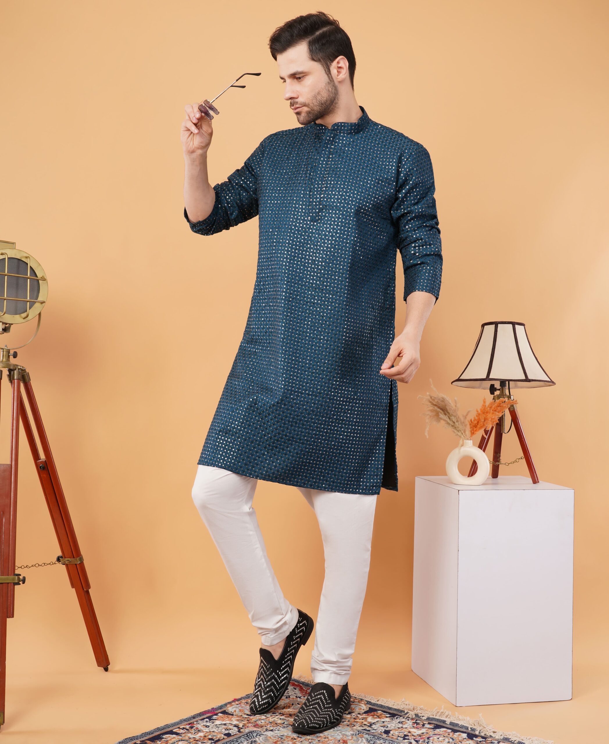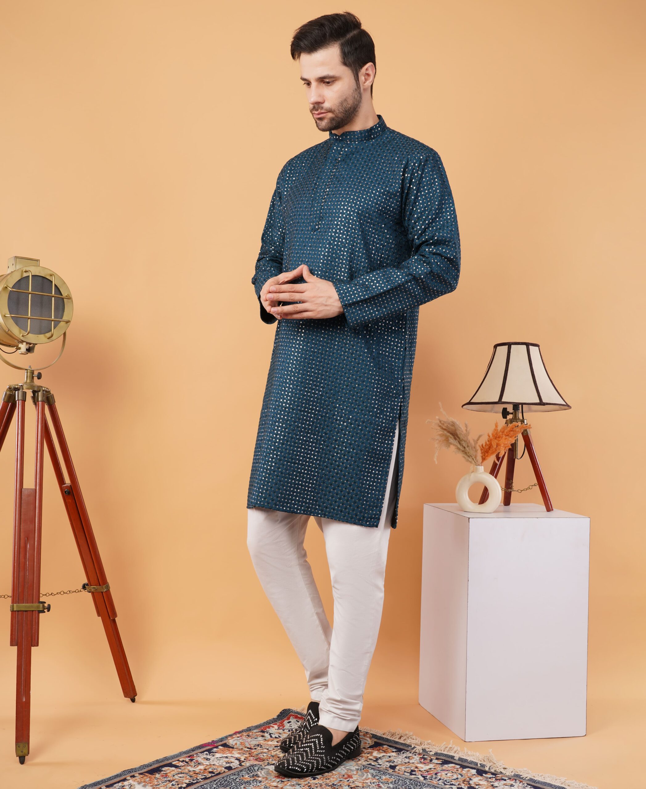 Whether it’s Diwali, Eid, a wedding celebration, or a cultural event, this silk jacquard embroidered kurta ensures you stand out with timeless charm. It also makes a thoughtful gift choice for grooms, friends, or family members during special occasions.