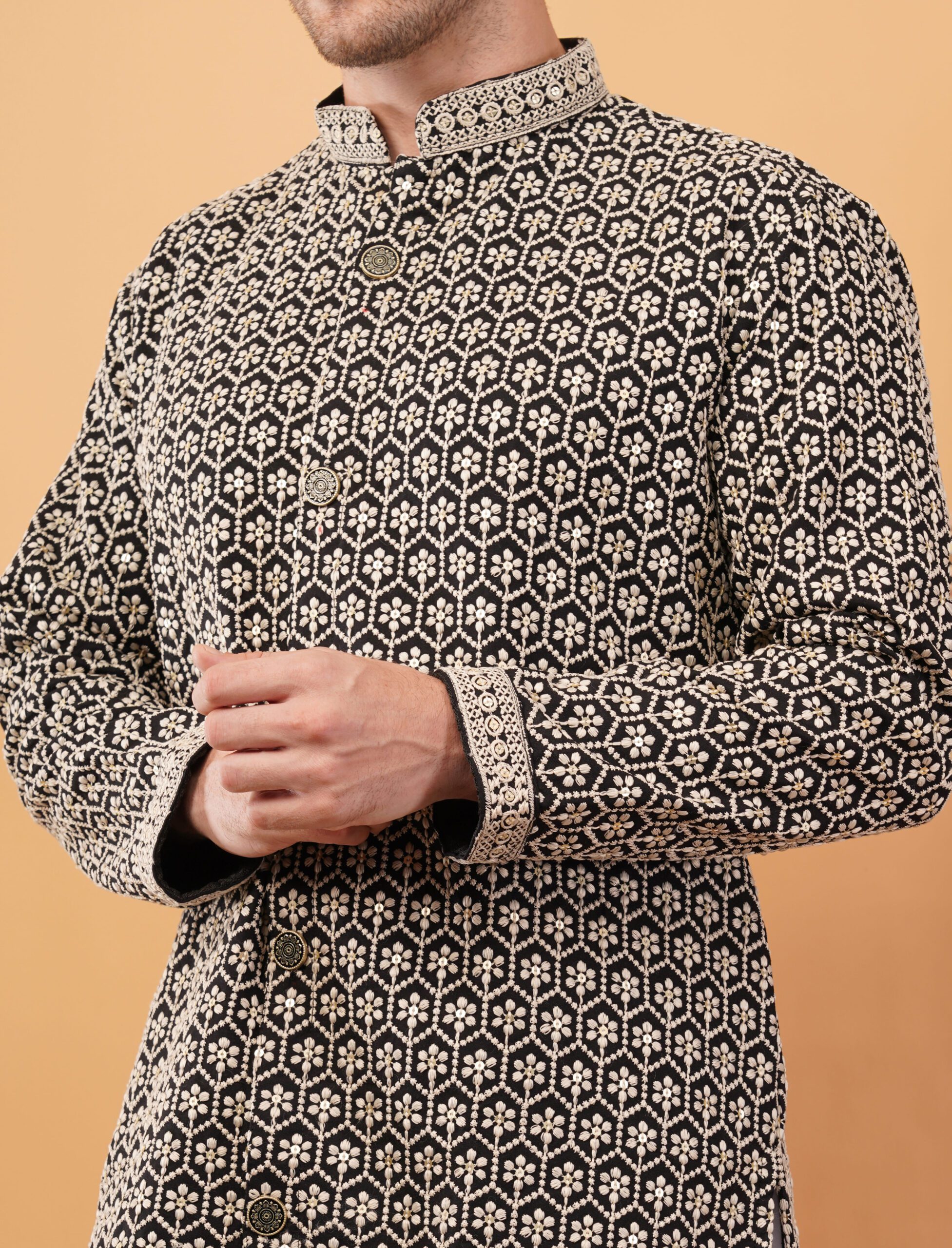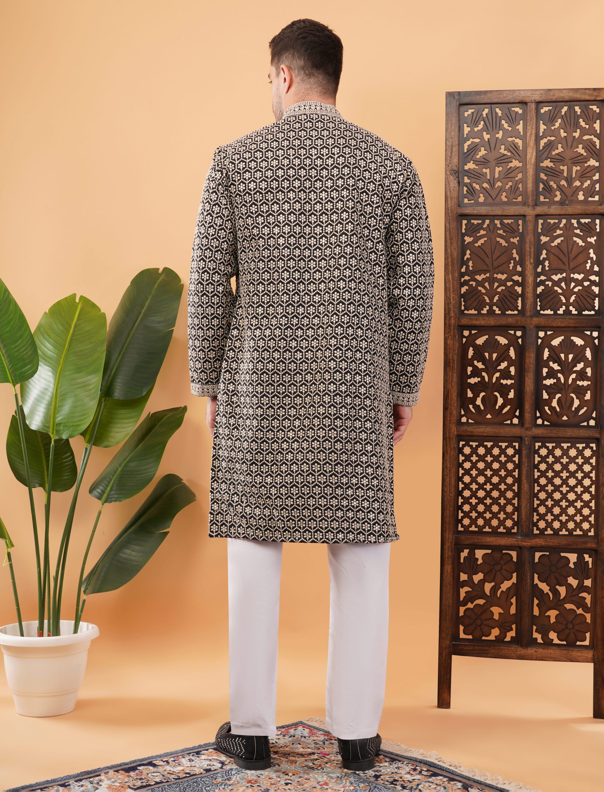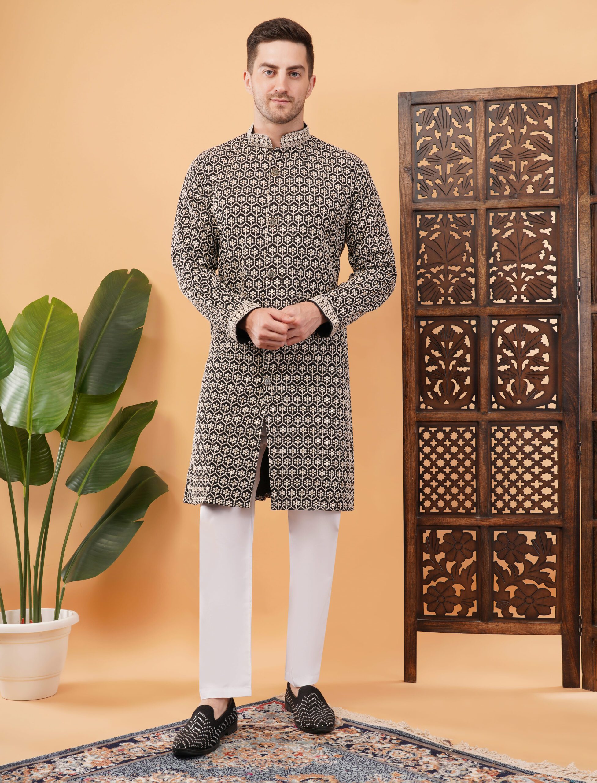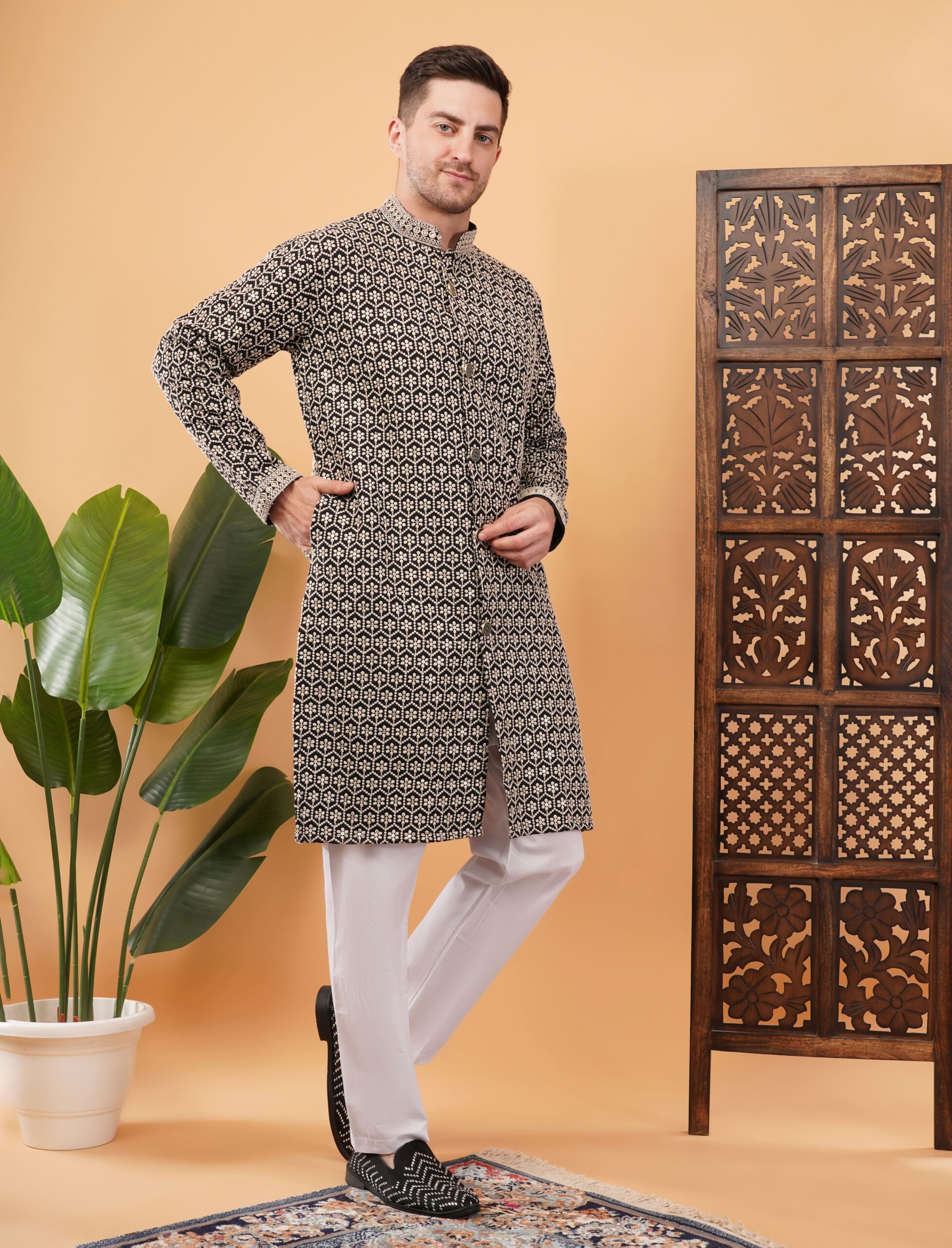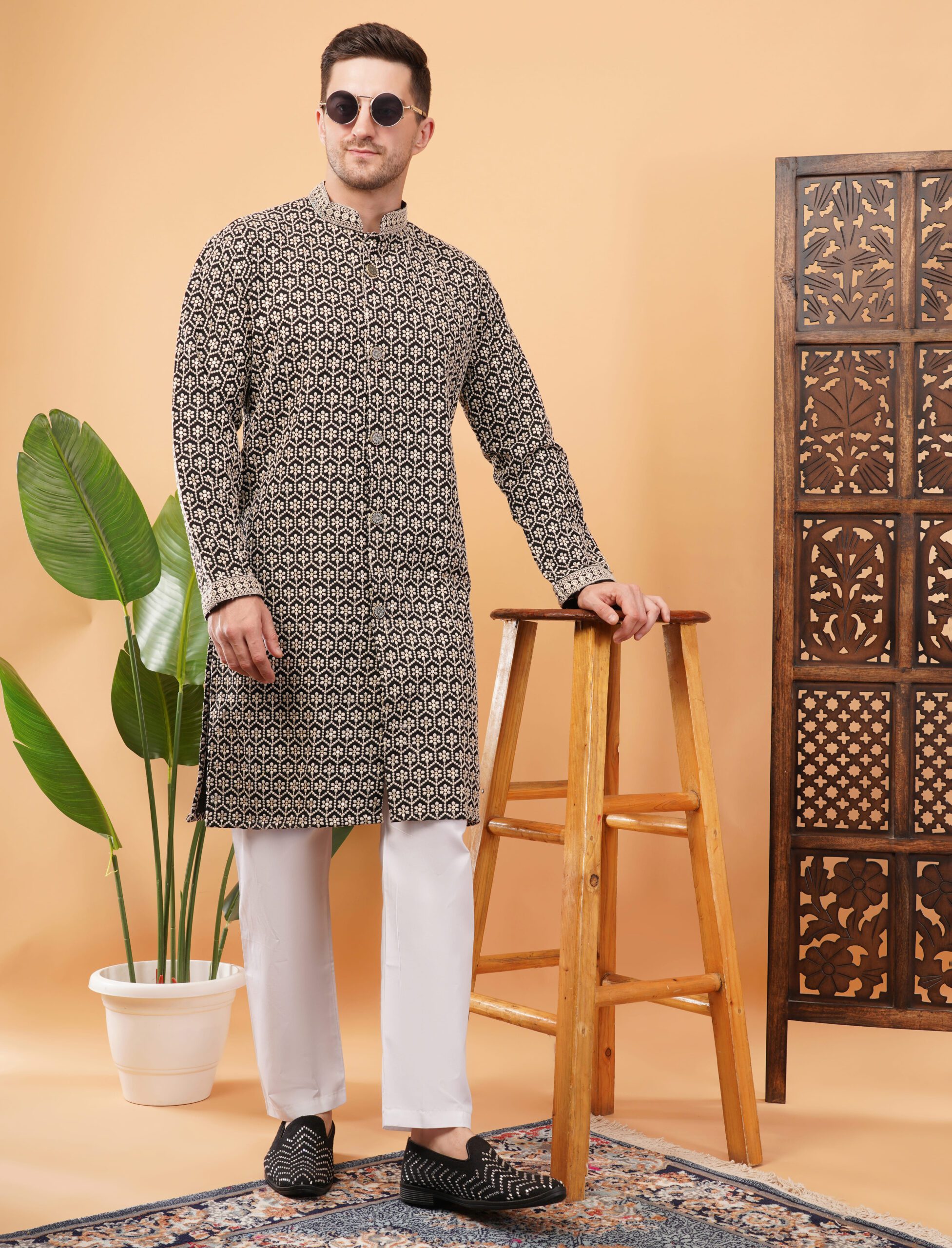 Men’s Viscose Cotton Sequence Fower Embroidered Semi-indo western kurta | Elegant traditional outfit for weddings & festive wear