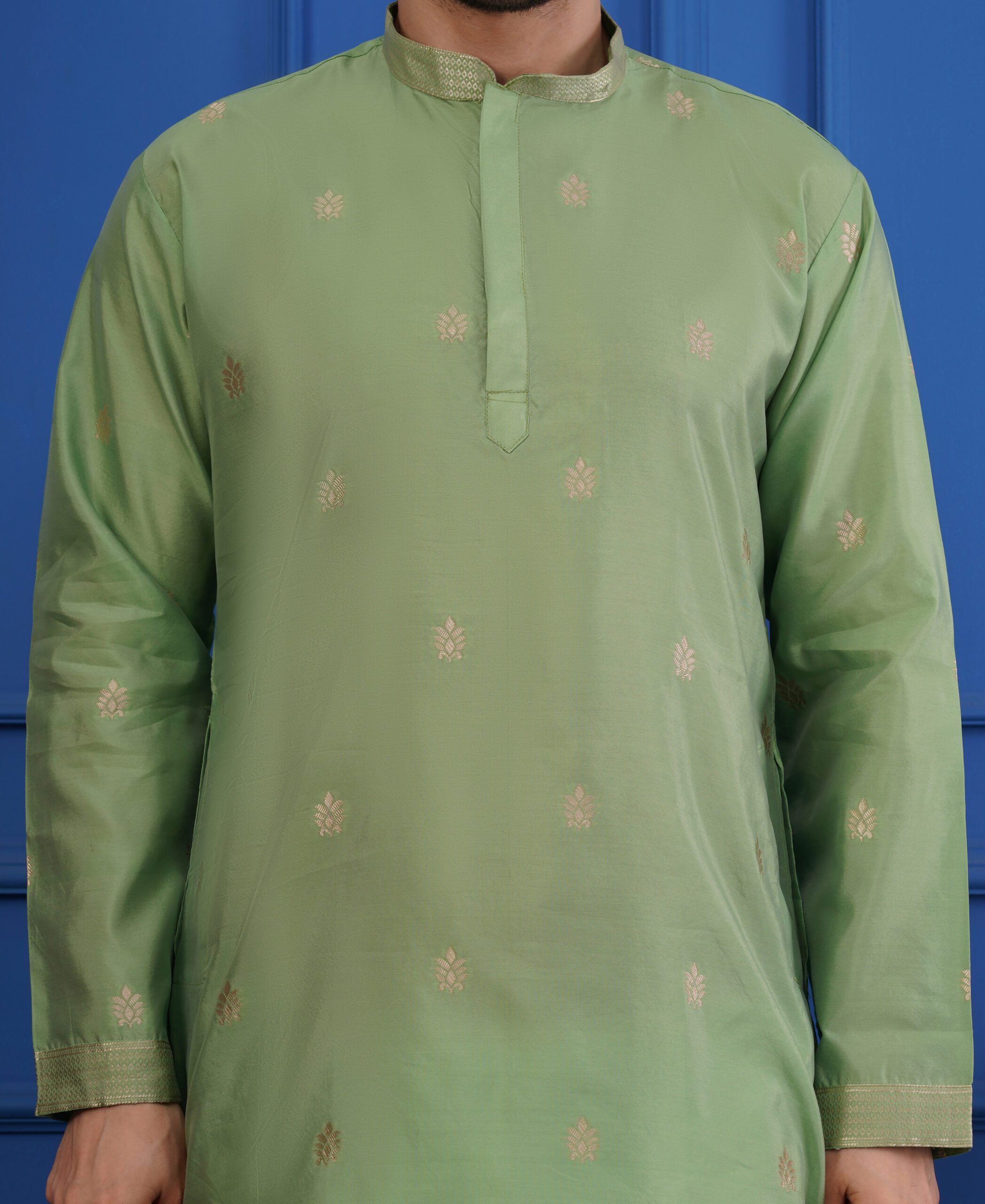Whether it’s Diwali, Eid, a wedding celebration, or a cultural event, this silk jacquard embroidered kurta ensures you stand out with timeless charm. It also makes a thoughtful gift choice for grooms, friends, or family members during special occasions.