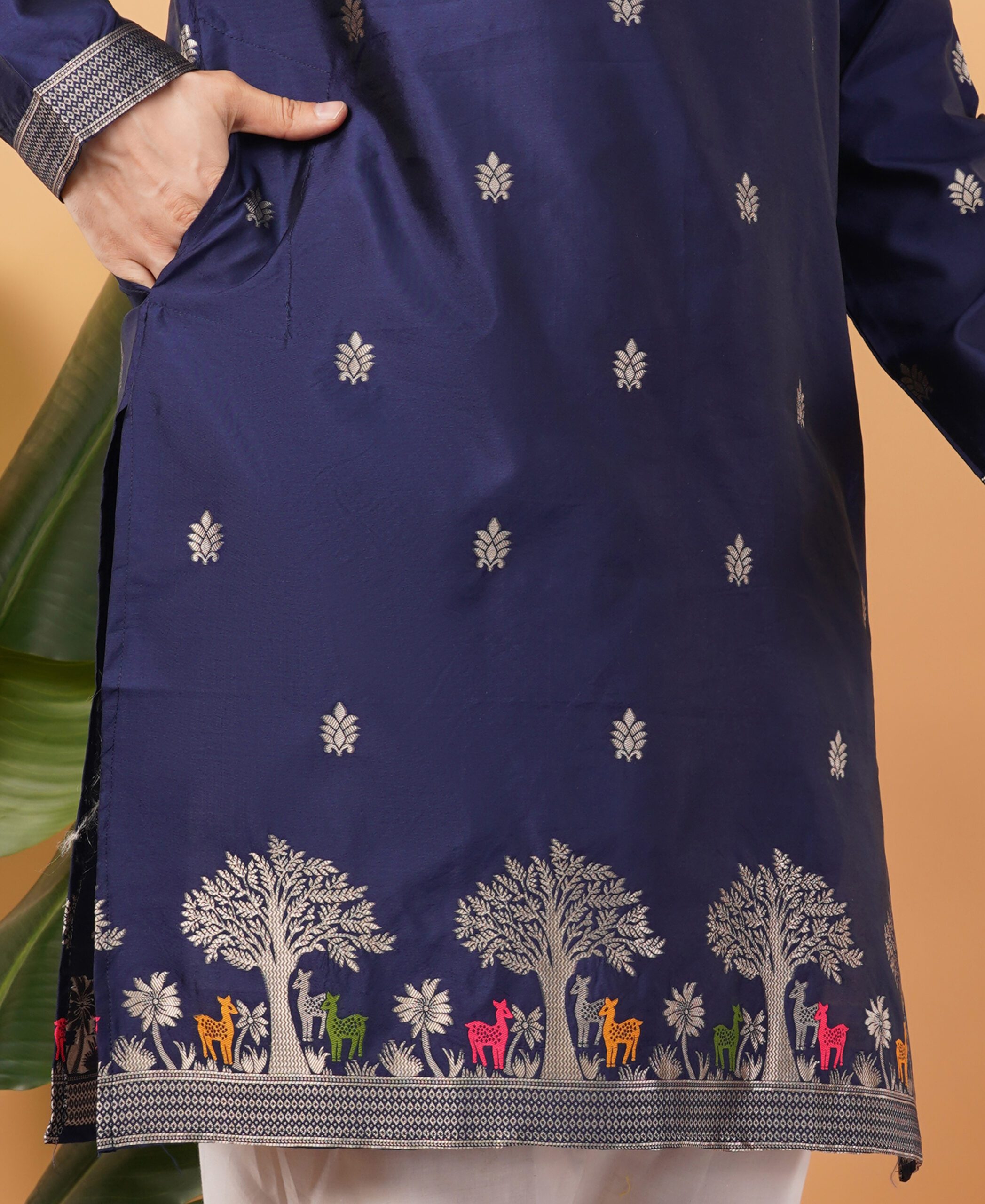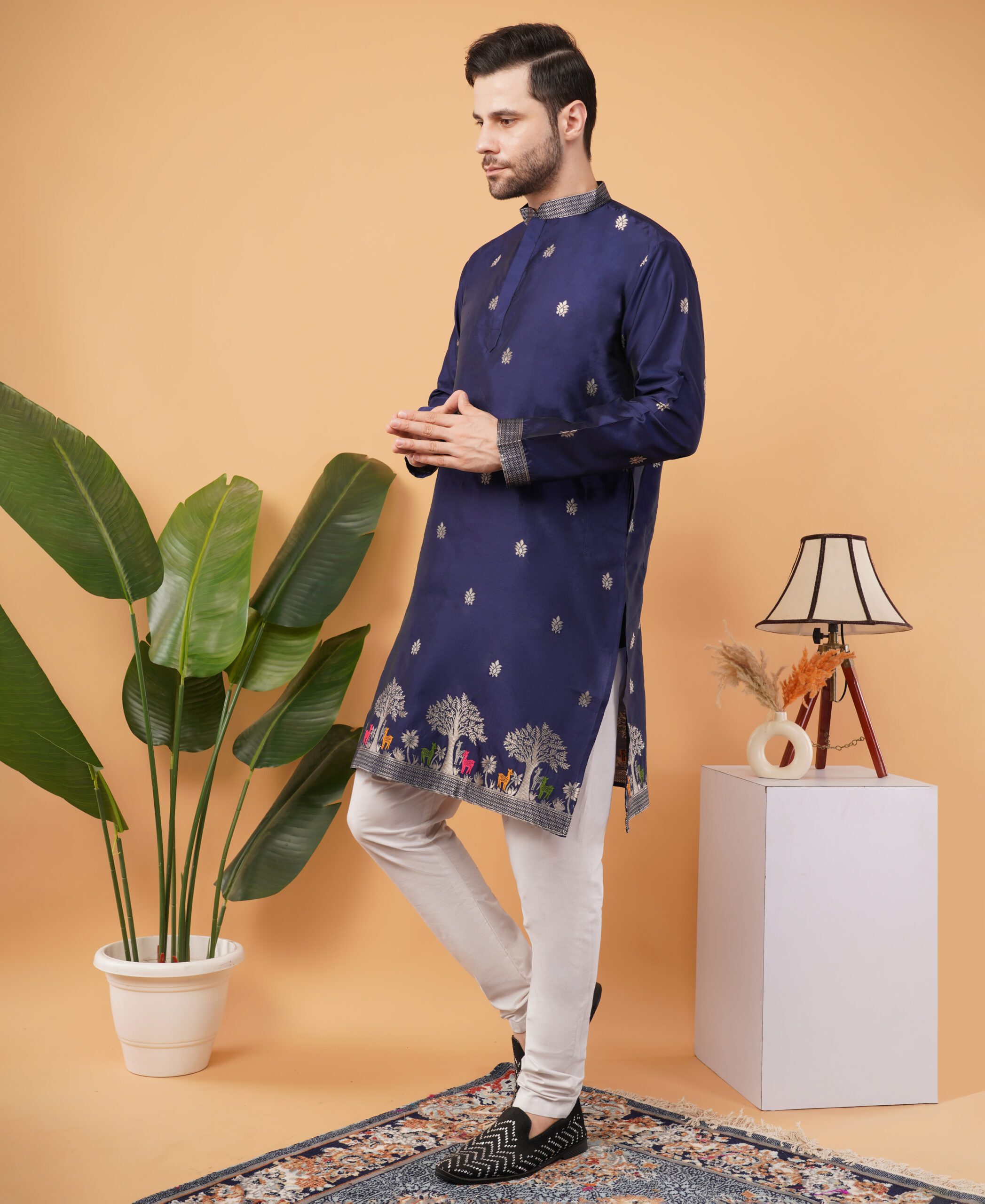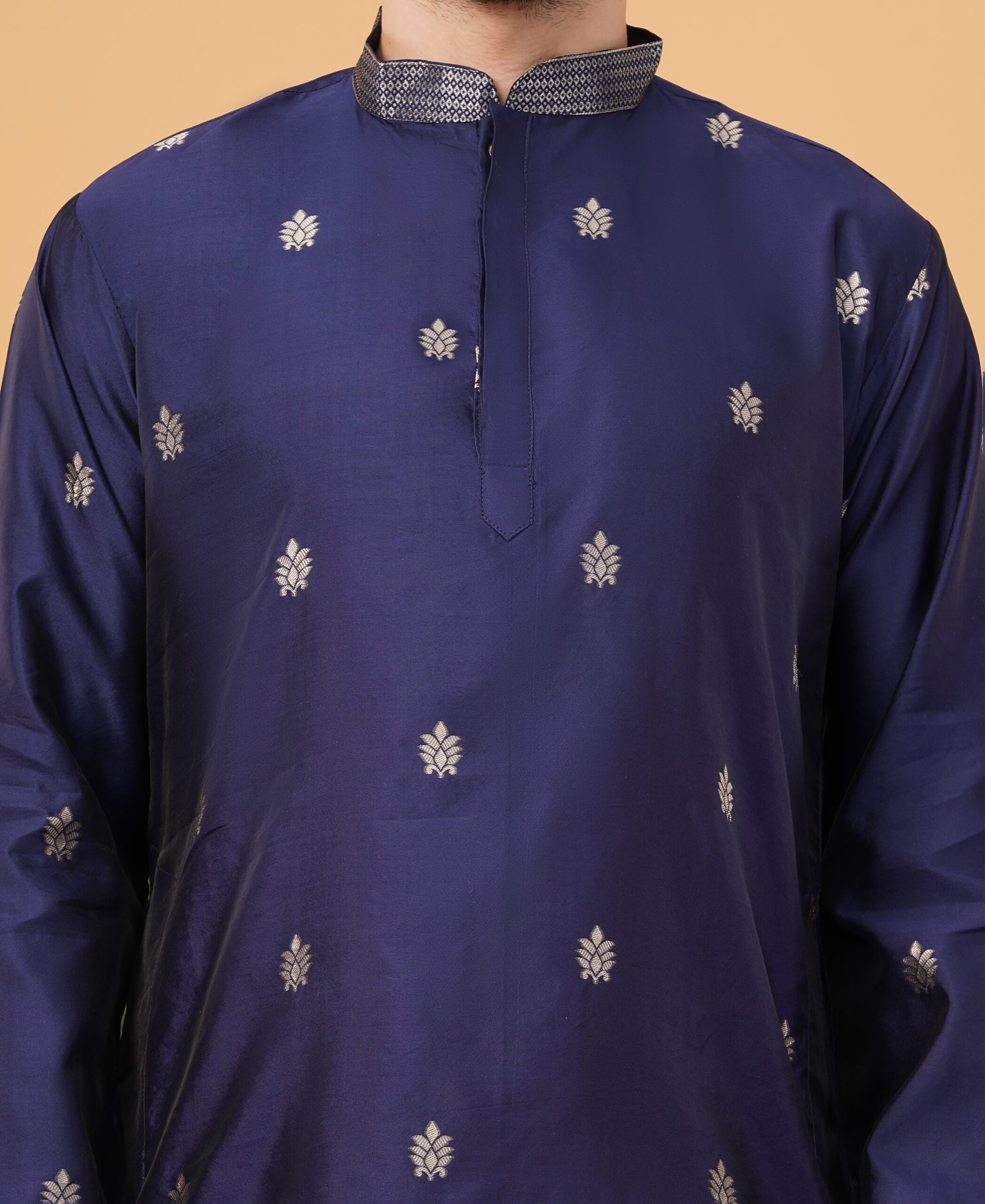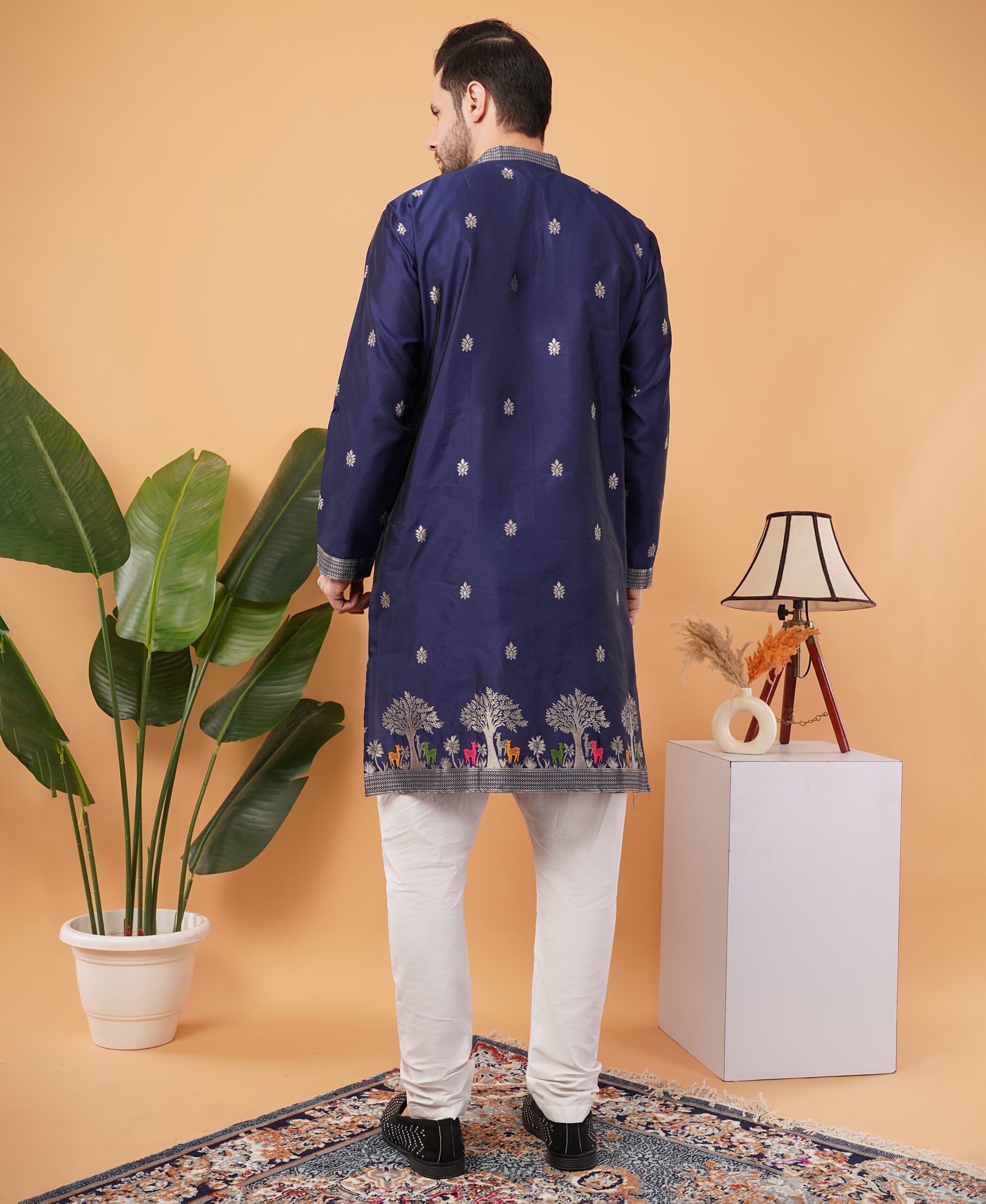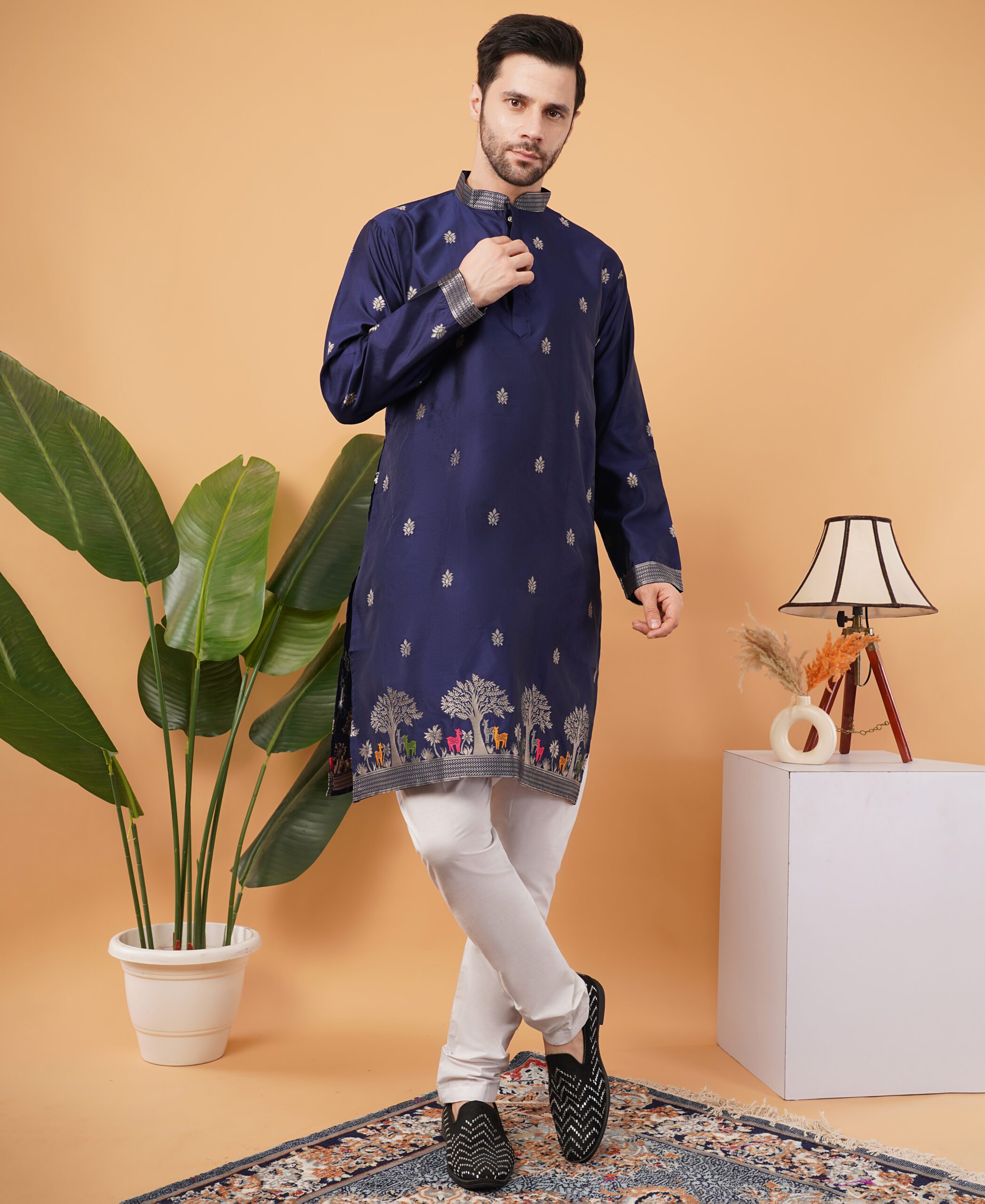 Whether it’s Diwali, Eid, a wedding celebration, or a cultural event, this silk jacquard embroidered kurta ensures you stand out with timeless charm. It also makes a thoughtful gift choice for grooms, friends, or family members during special occasions.