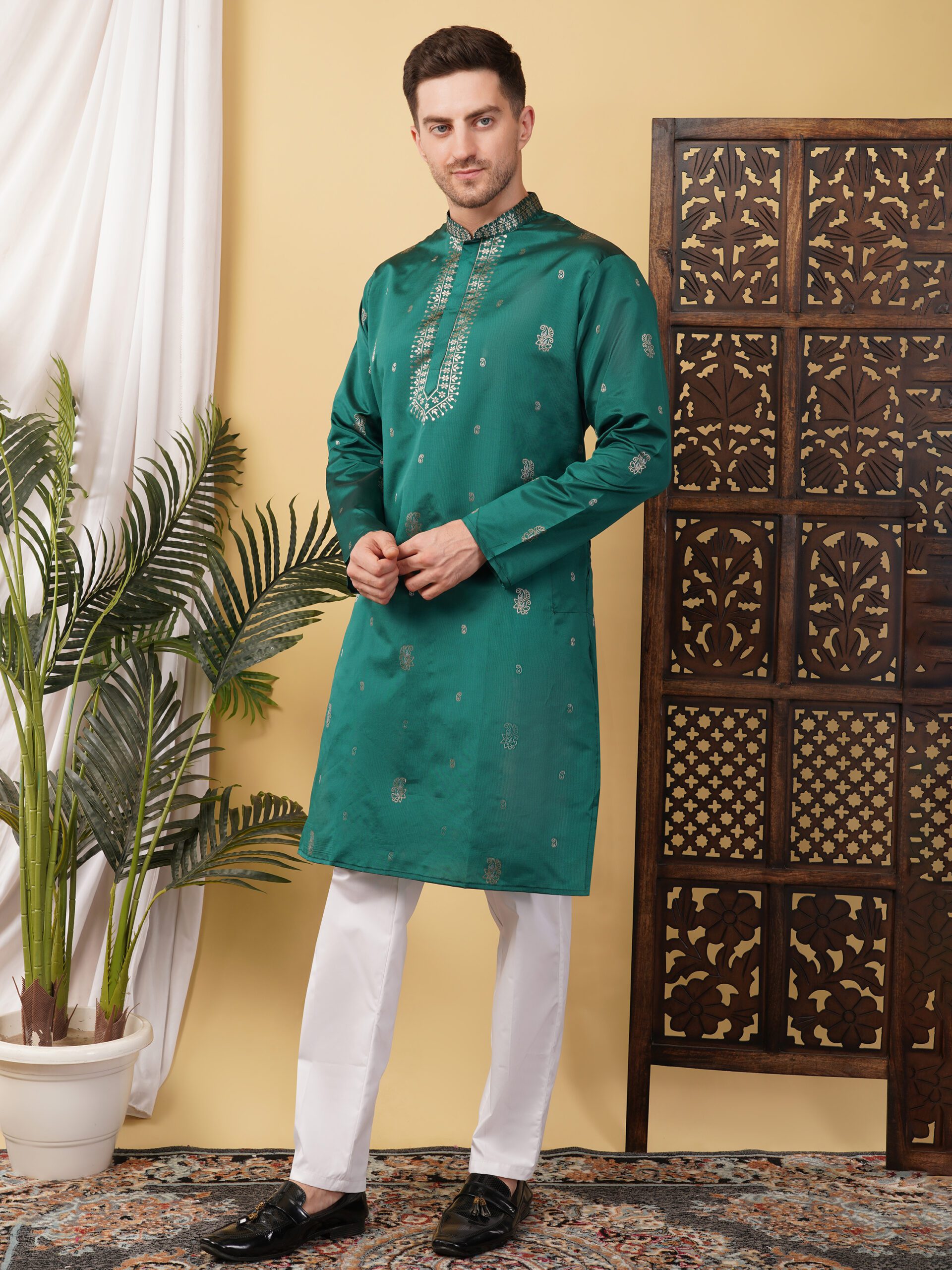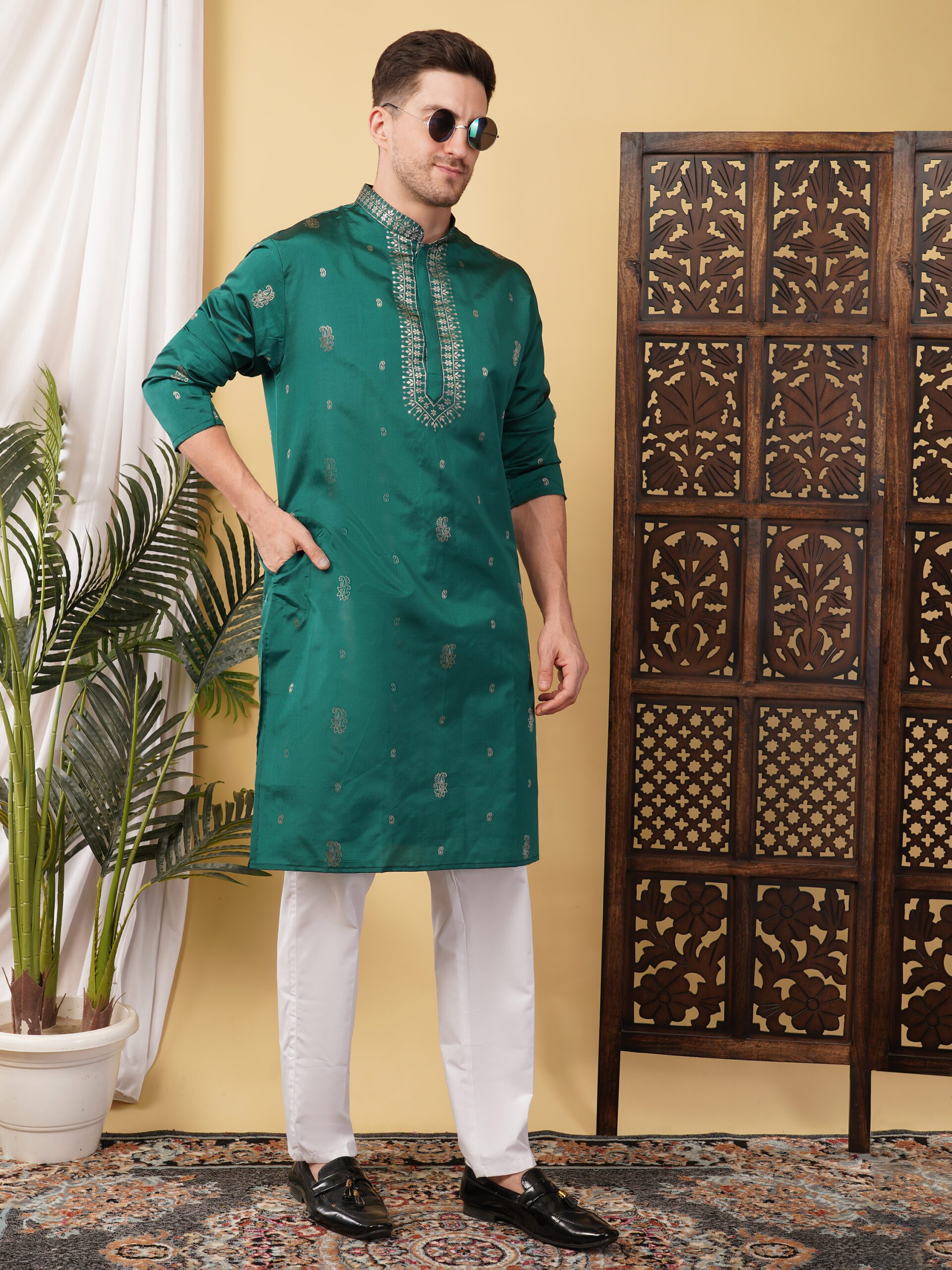 Step into timeless elegance with this premium silk jacquard neck work kurta, designed for men who value both sophistication and comfort. Crafted from high-quality silk blend jacquard fabric, this kurta offers a luxurious feel while ensuring breathability and ease of movement.