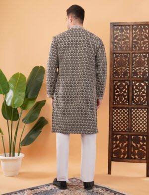 Men’s Cotton Sequince Lines Embroidered Semi-Indo Western Kurta with Elegant Design | Stylish and Comfortable Outfit for Weddings, Parties, Festivals & Functions
