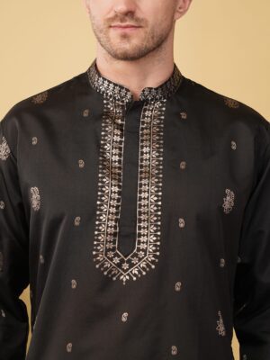 Enhance your ethnic style with this silk jacquard neck work kurta. Designed with elegant embroidery and a comfortable regular fit, it’s the perfect choice for weddings, parties, traditional functions, and festive celebrations.